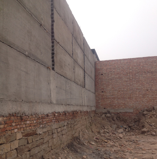 在黃粱夢魏志強(qiáng)原有的毛石基礎(chǔ)上,砌磚找平打圈梁,然后組裝墻板住宅。 黃粱夢村的一種建房習(xí)慣是在地下砌筑毛石,這樣的房子在被水泡時(shí),不會起堿發(fā)潮。但同樣,這樣的房子抗震性值得懷疑。
