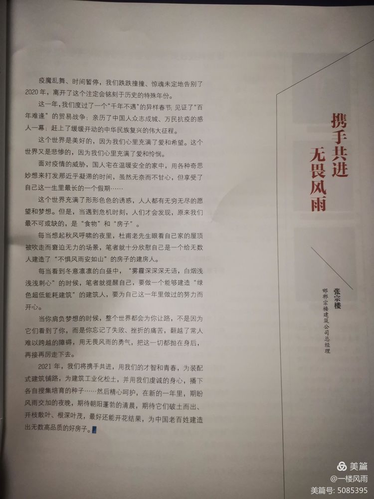 2021年,我們將攜手共進,用我們的才智和青春,為裝配式建筑鋪路,為建筑工業化松土,并用我們虔誠的身心,播下各自搜集培育的種子……然后精心呵護,在新的一年里,期盼風雨交加的夜晚,期待朝陽蓬勃的清晨,期待它們破土而出、開枝散葉、根深葉茂,還能開花結果,為中國老百姓建造出無數高品質的好房子。