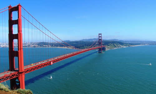 金門大橋是世界著名大橋之一,被譽為近代橋梁工程的一項奇跡。大橋雄峙于美國加利福尼亞州寬1900多米的金門海峽之上。金門海峽為舊金山海灣入口處,兩岸陡峻,航道