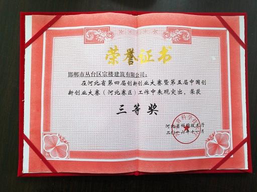 恭喜2016年邯鄲市叢臺區宗樓建筑有限公司的“宗樓建筑超市”項目,參加由科技部、教育部主辦的中國創新創業大賽,獲得河北賽區三等獎。 宗樓建筑超
