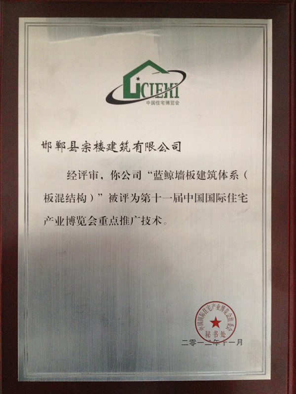 第十一屆國際住宅產業博覽會重點推廣技術獎牌